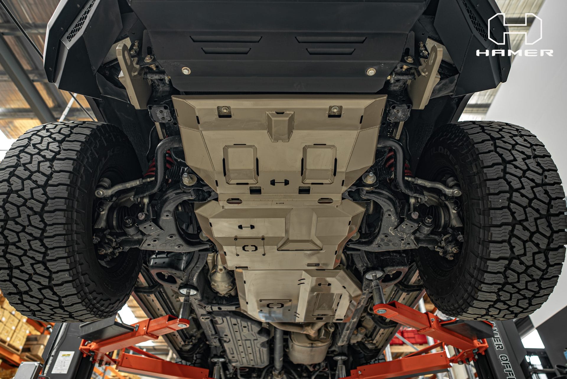 The Hamer Full underbody protection plates let you protect your fragile radiator, engine oil sump, and transmission from physical hits