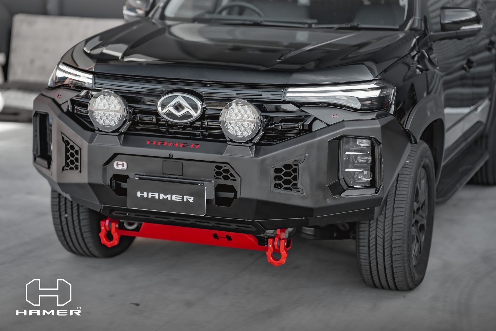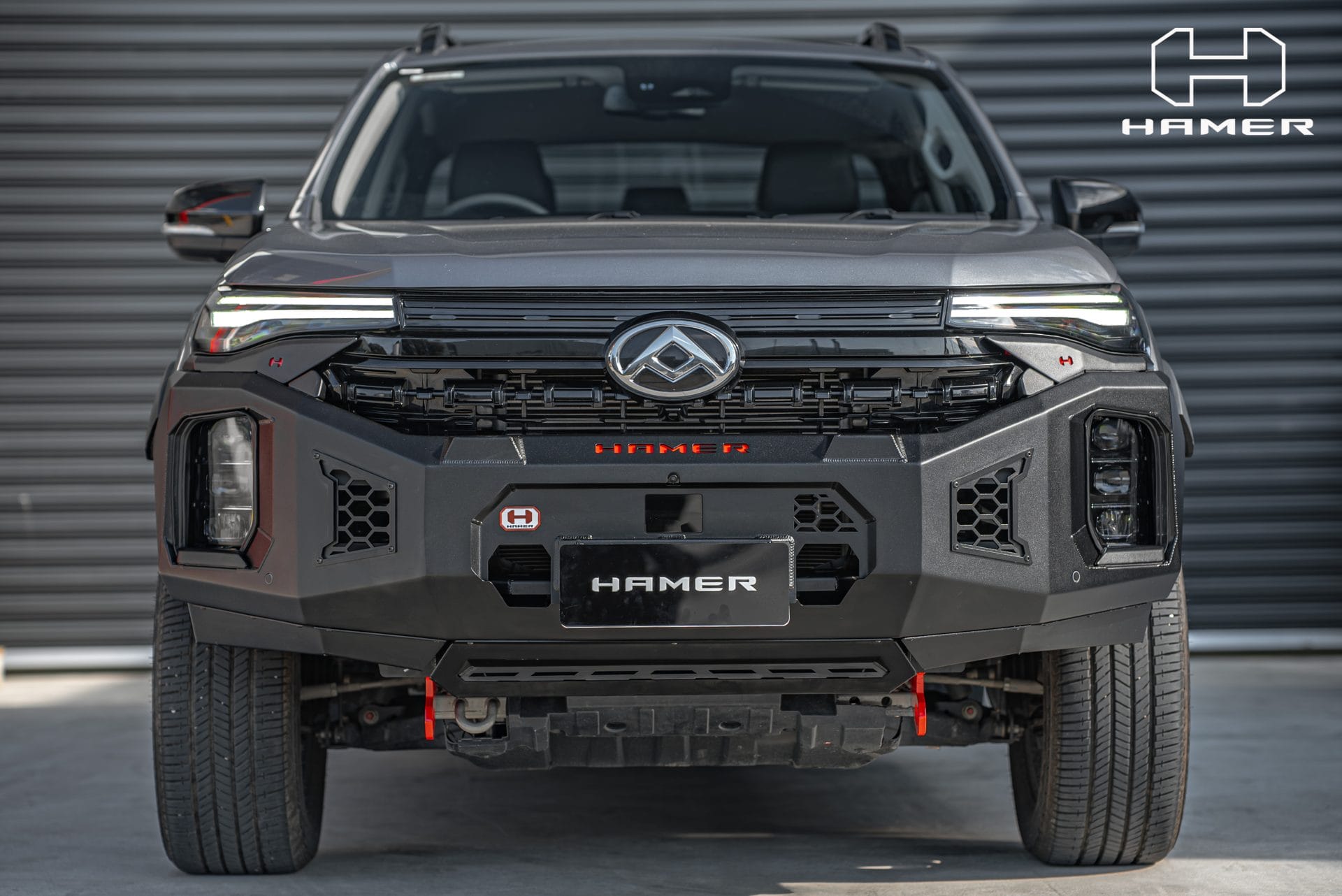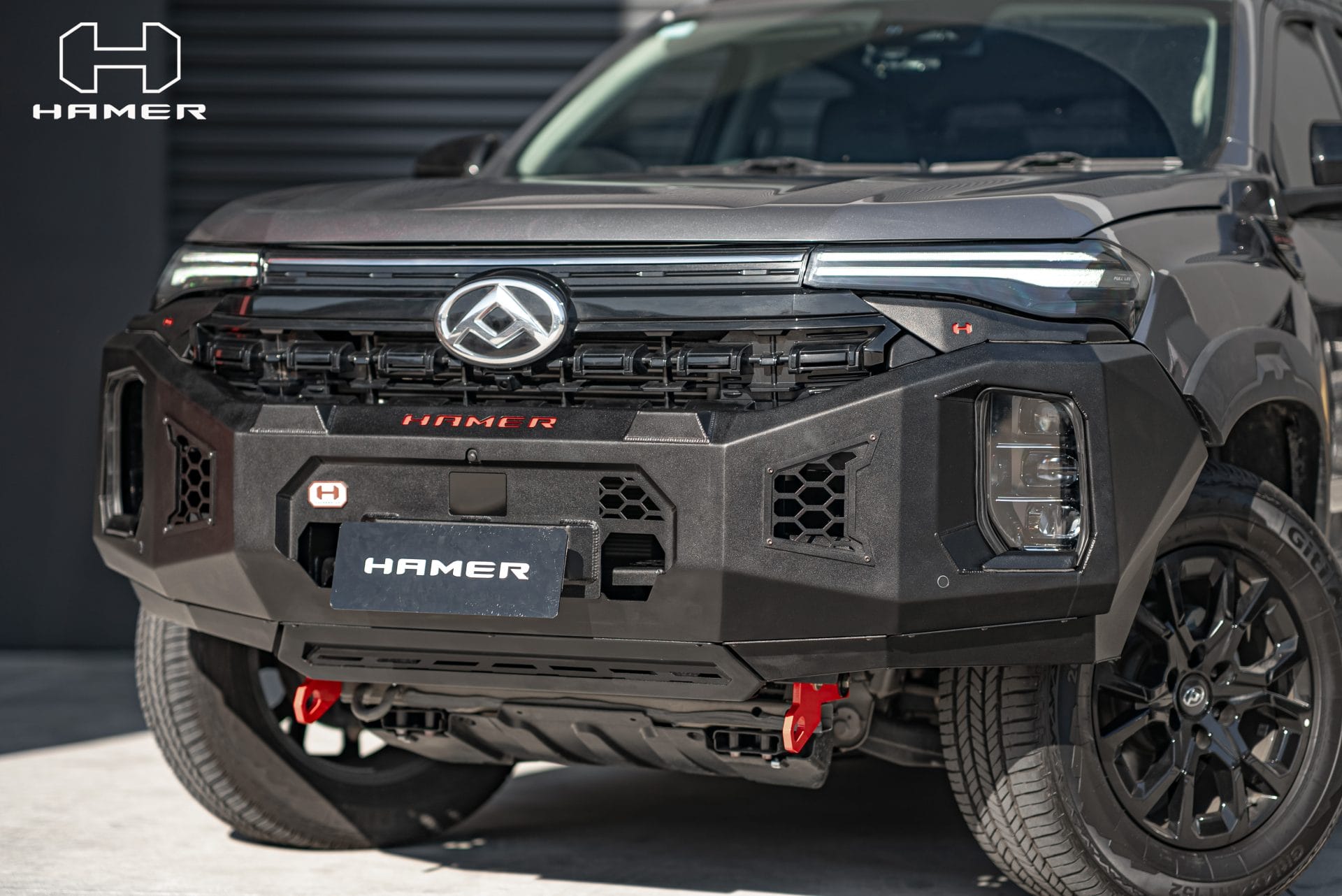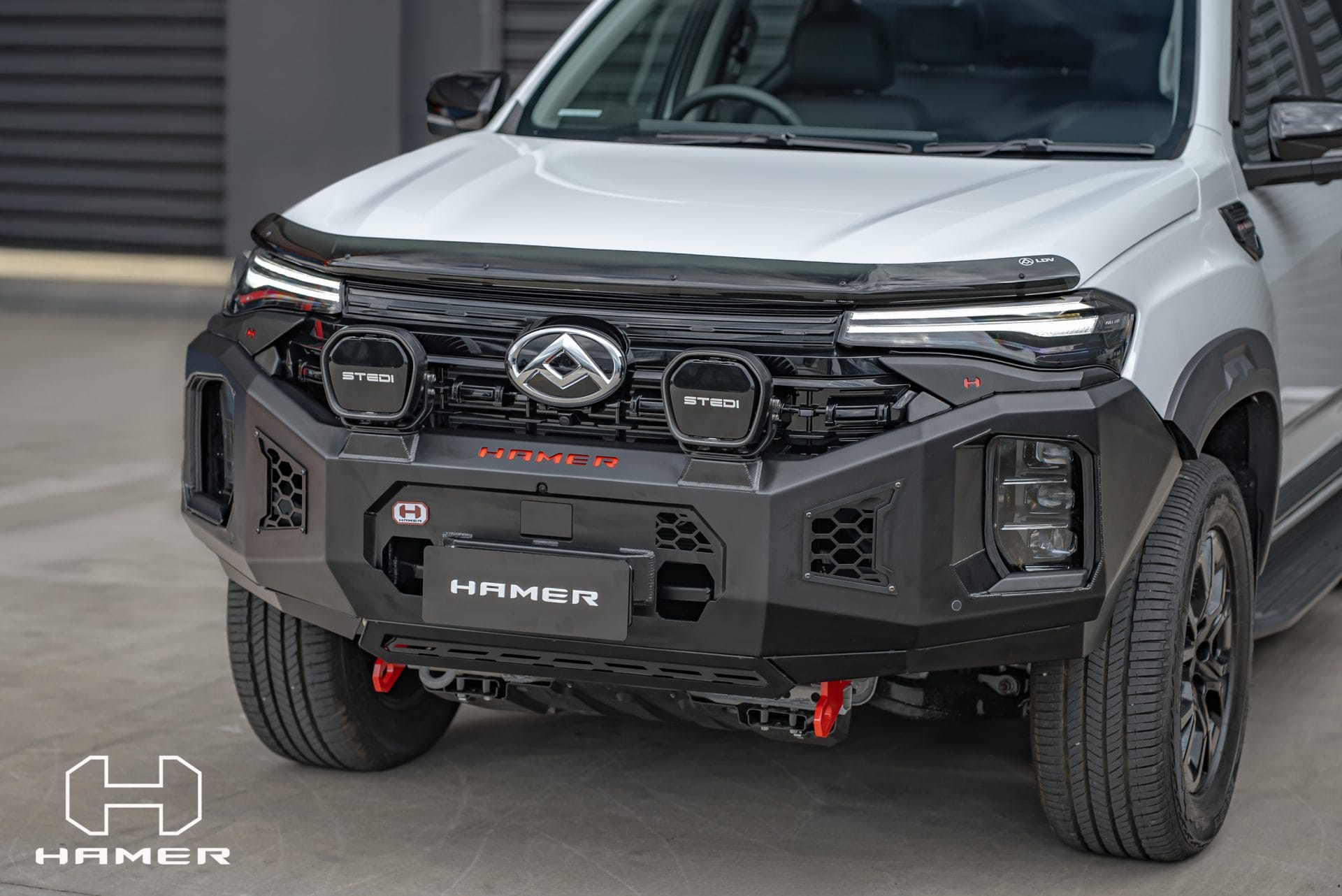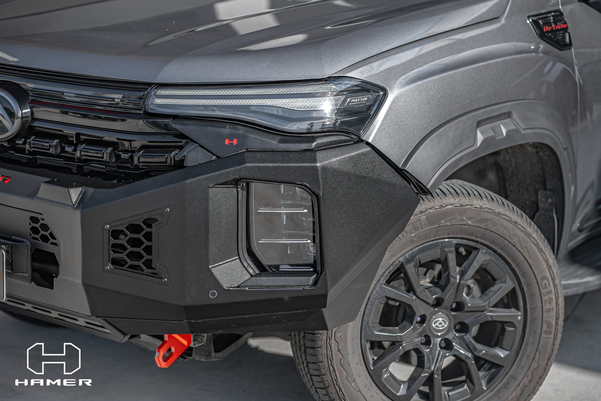 Constructed from 3 mm high-grade steel plate, the Hamer King Series Bull Bar is built to withstand tough off-road conditions and is ADR/Airbag compliant for added safety. It comes equipped with rated recovery points, making it ideal for your off-road adventures. The bull bar’s compatibility with original factory parking sensors and European E-Mark certified high-quality LED lighting system ensures enhanced functionality and safety on the road.