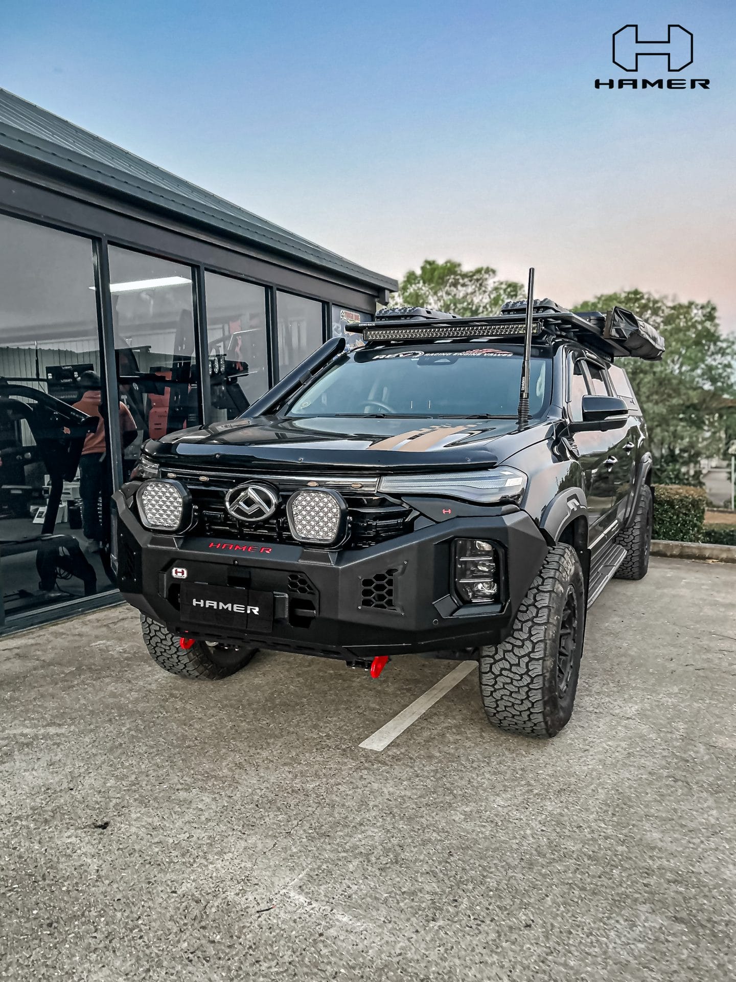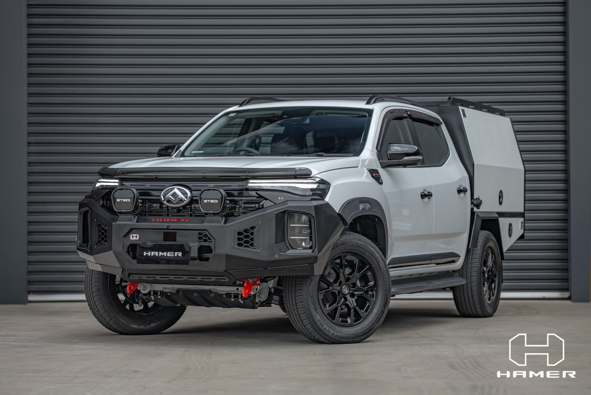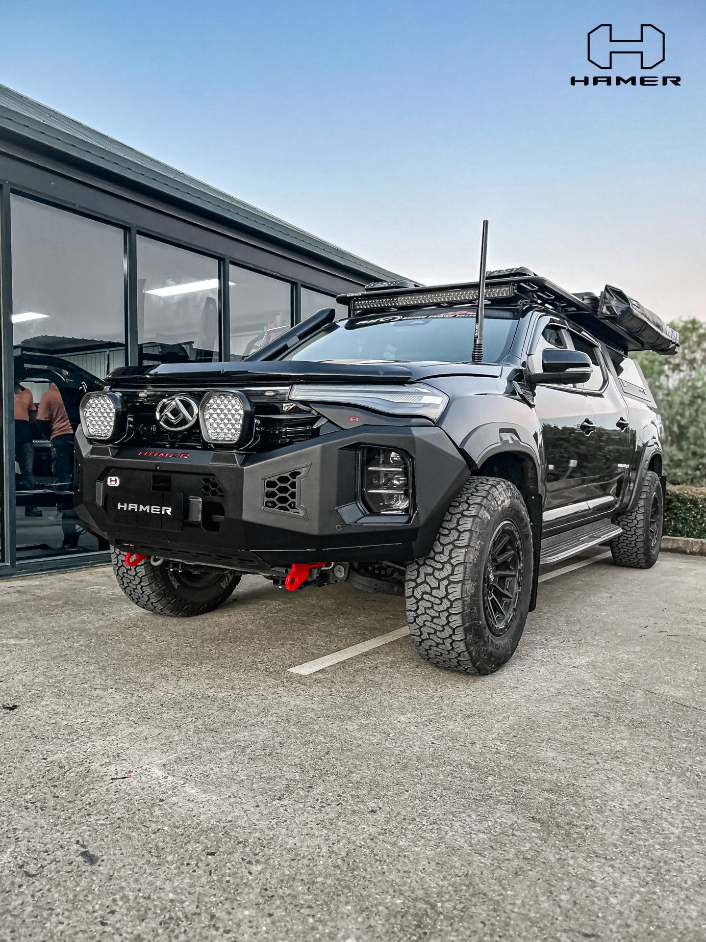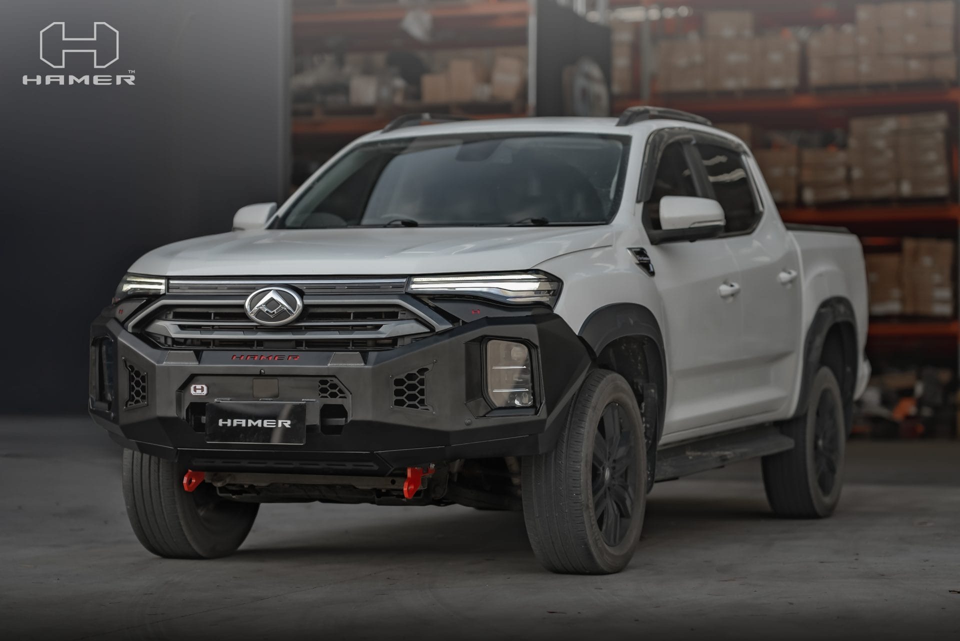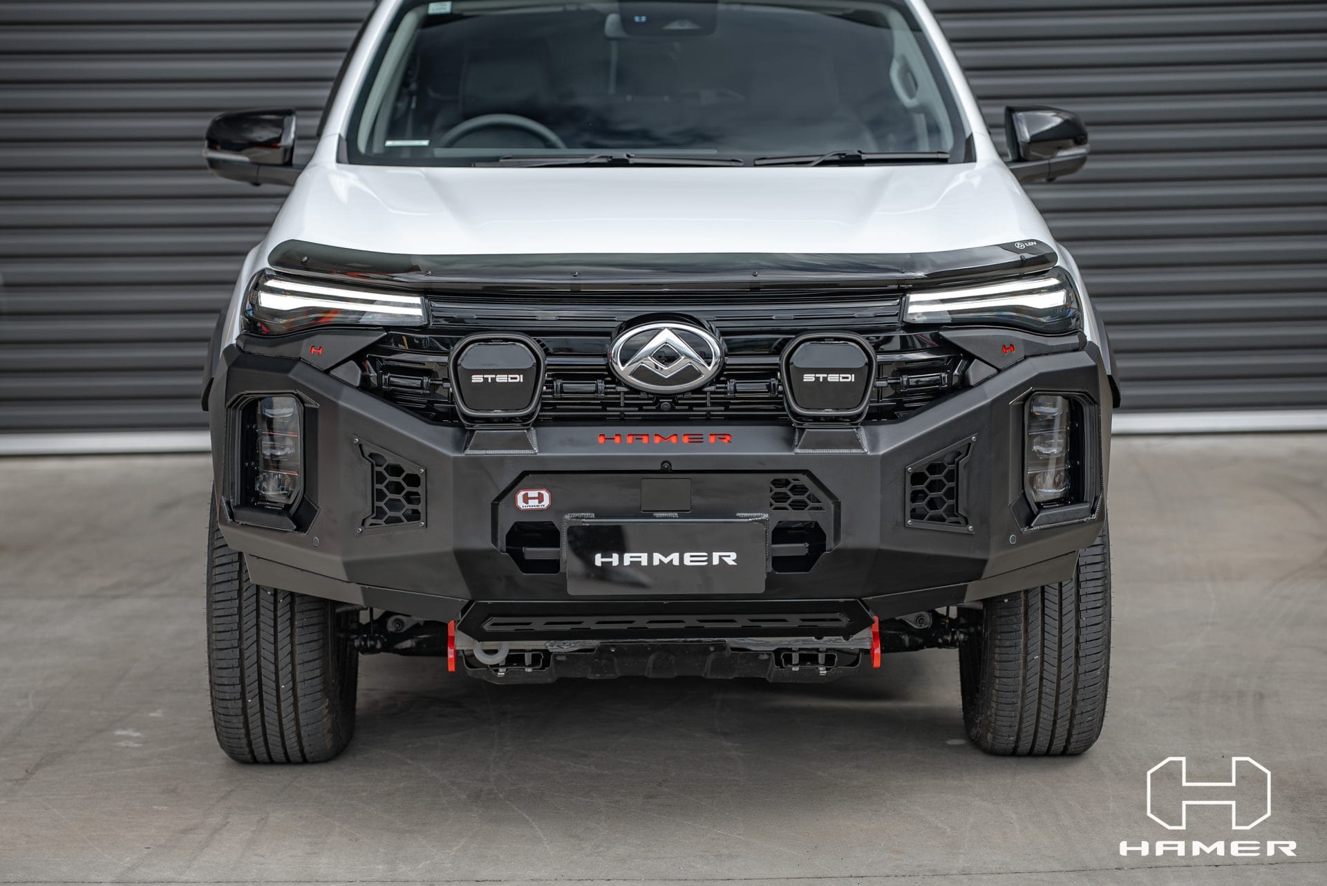 Constructed from 3 mm high-grade steel plate, the Hamer King Series Bull Bar is built to withstand tough off-road conditions and is ADR/Airbag compliant for added safety. It comes equipped with rated recovery points, making it ideal for your off-road adventures. The bull bar’s compatibility with original factory parking sensors and European E-Mark certified high-quality LED lighting system ensures enhanced functionality and safety on the road.