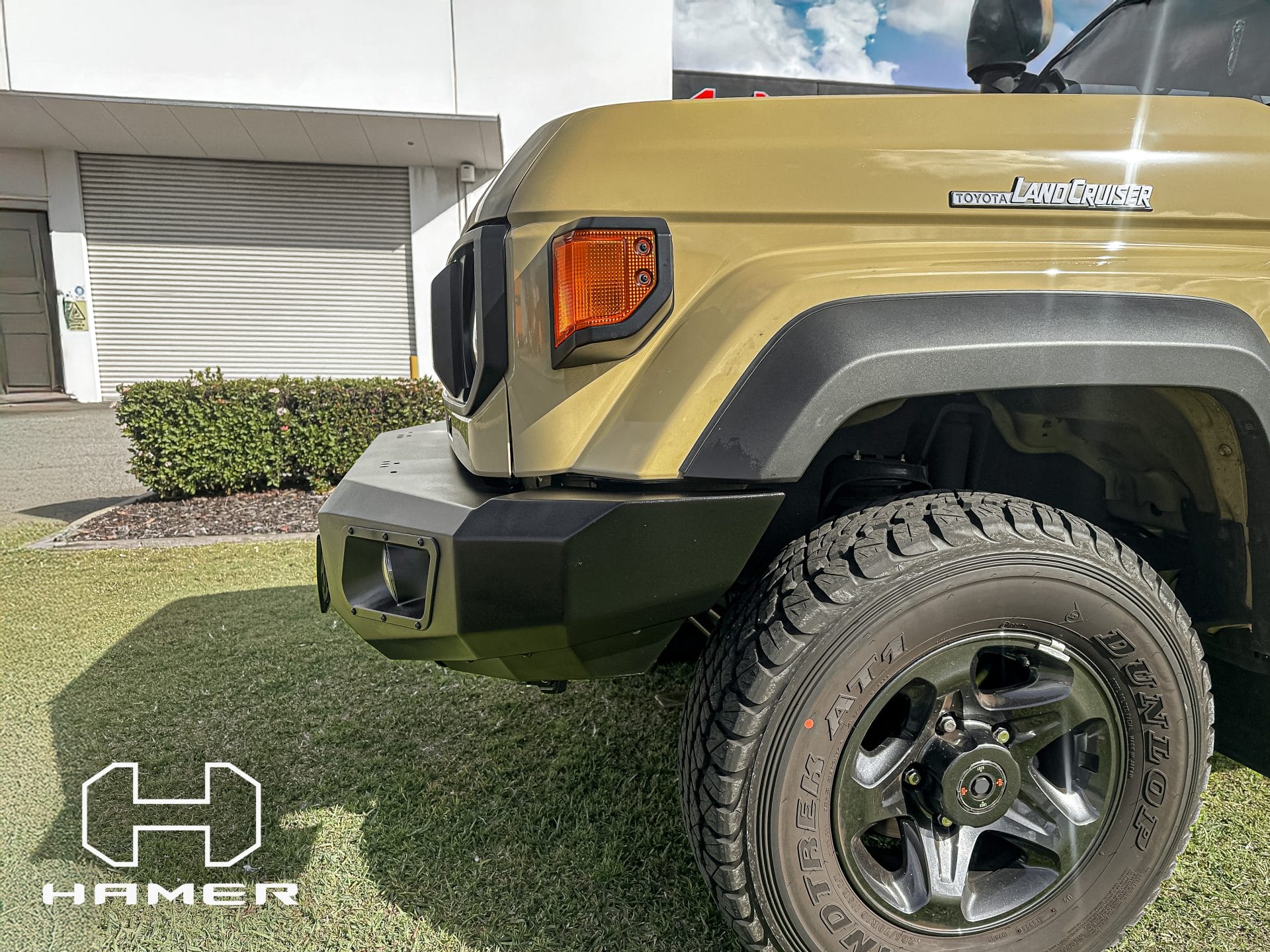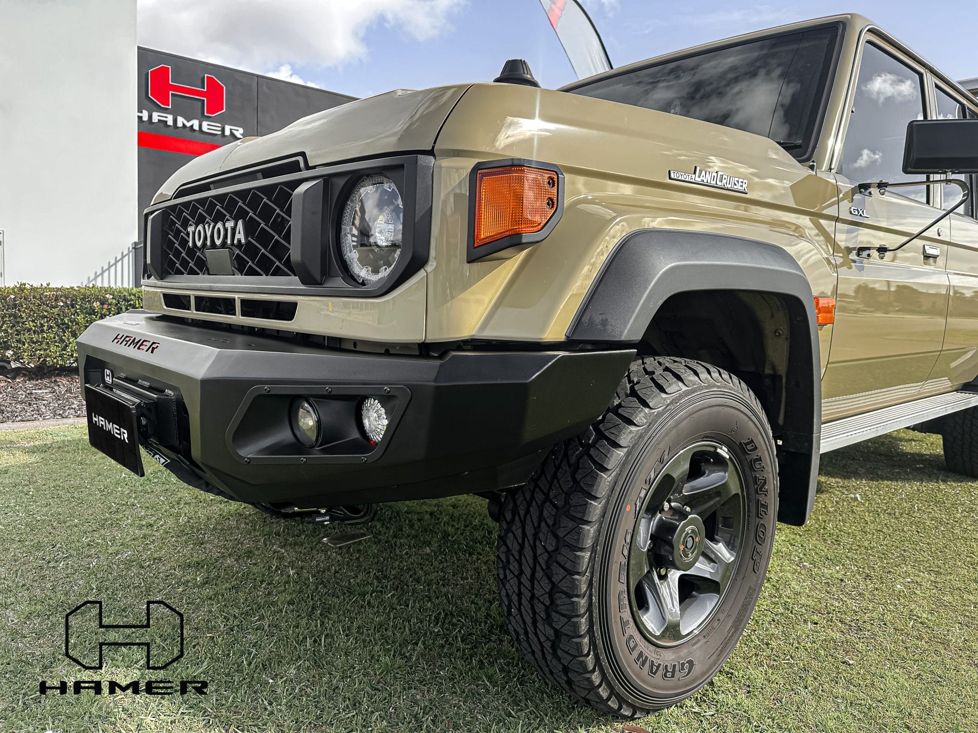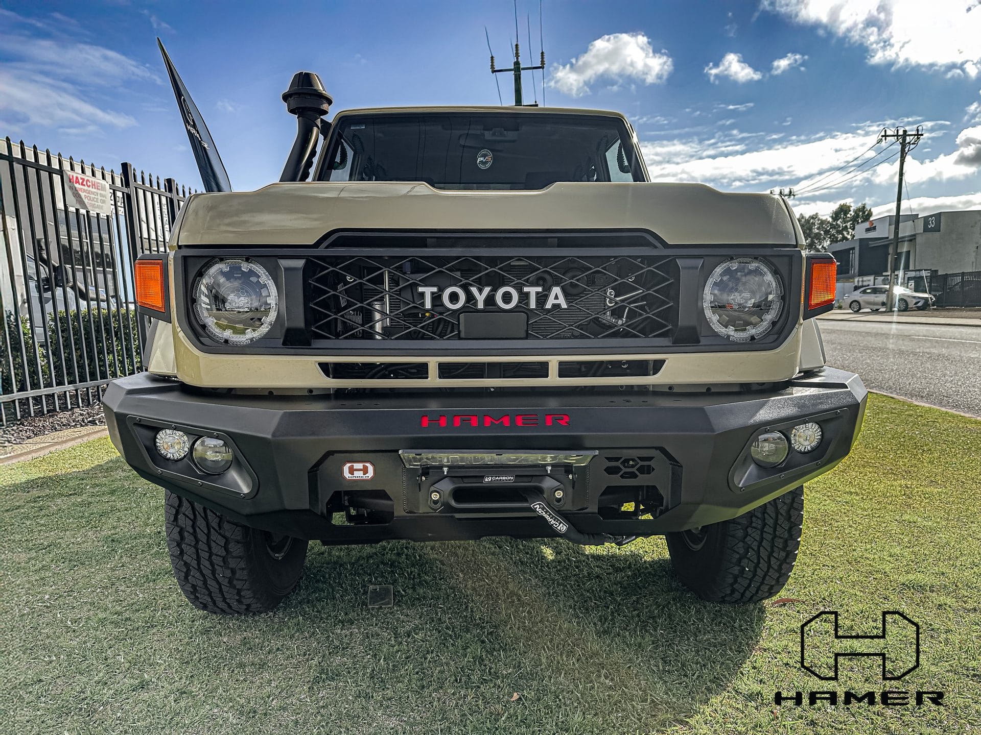 Hamer King series bull bar is a bumper replacement bull bar that has been specifically designed to fit Toyota 70 Series ( 2023 – Present ). Not only adding a tough look to your vehicle, Hamer bull bar protects the front of your vehicle during an unexpected event. Stay confident in every journey you make.