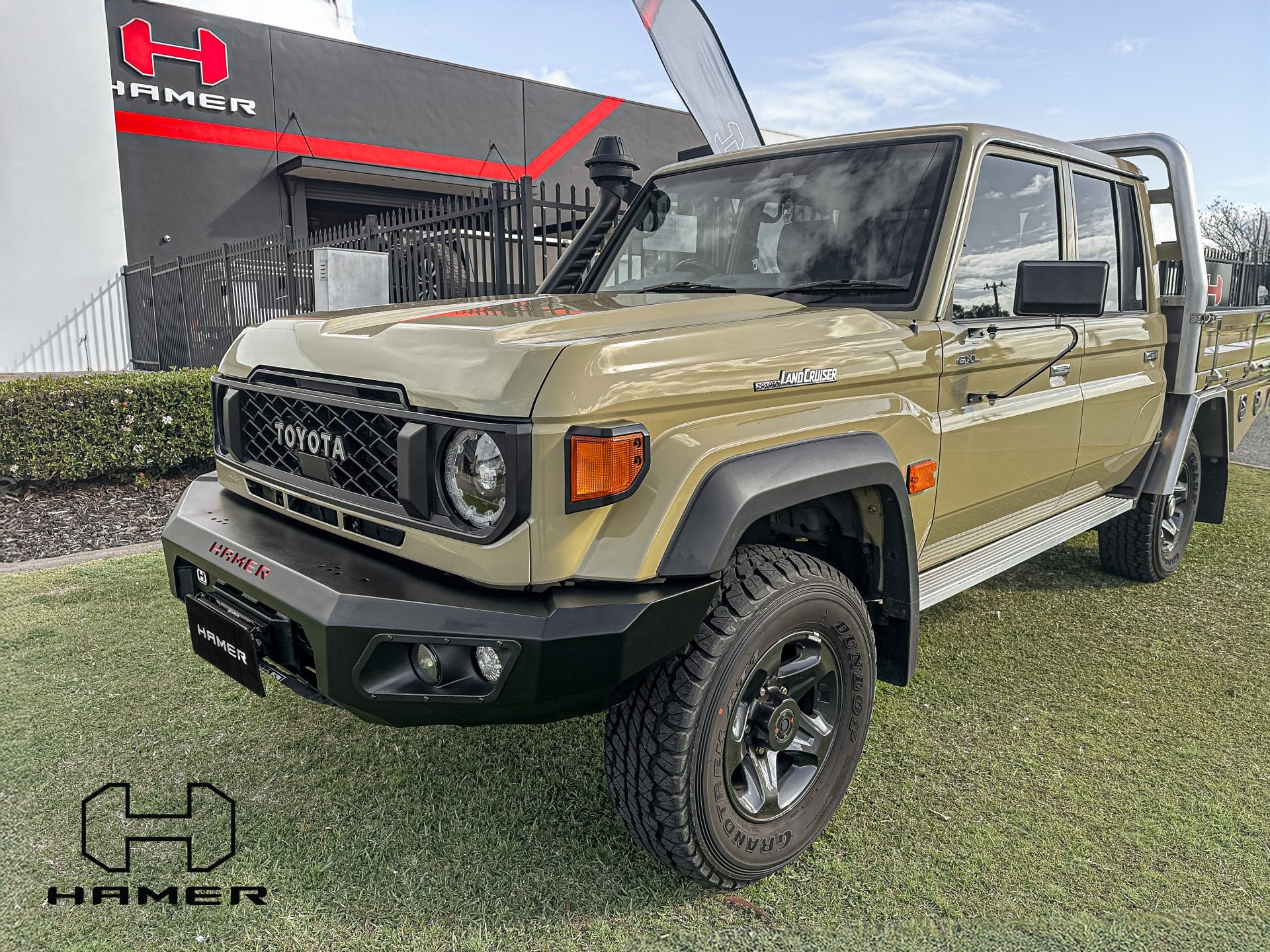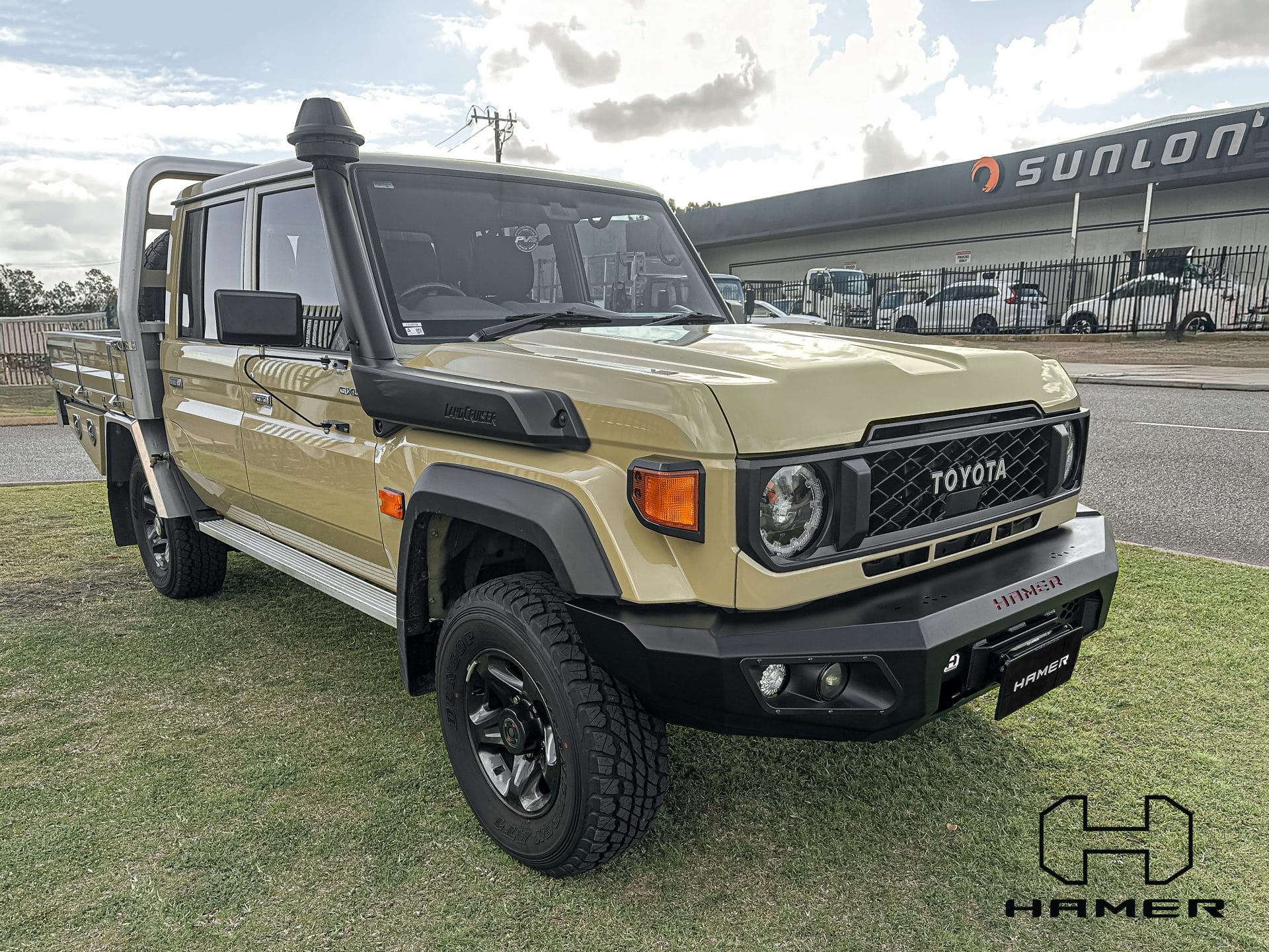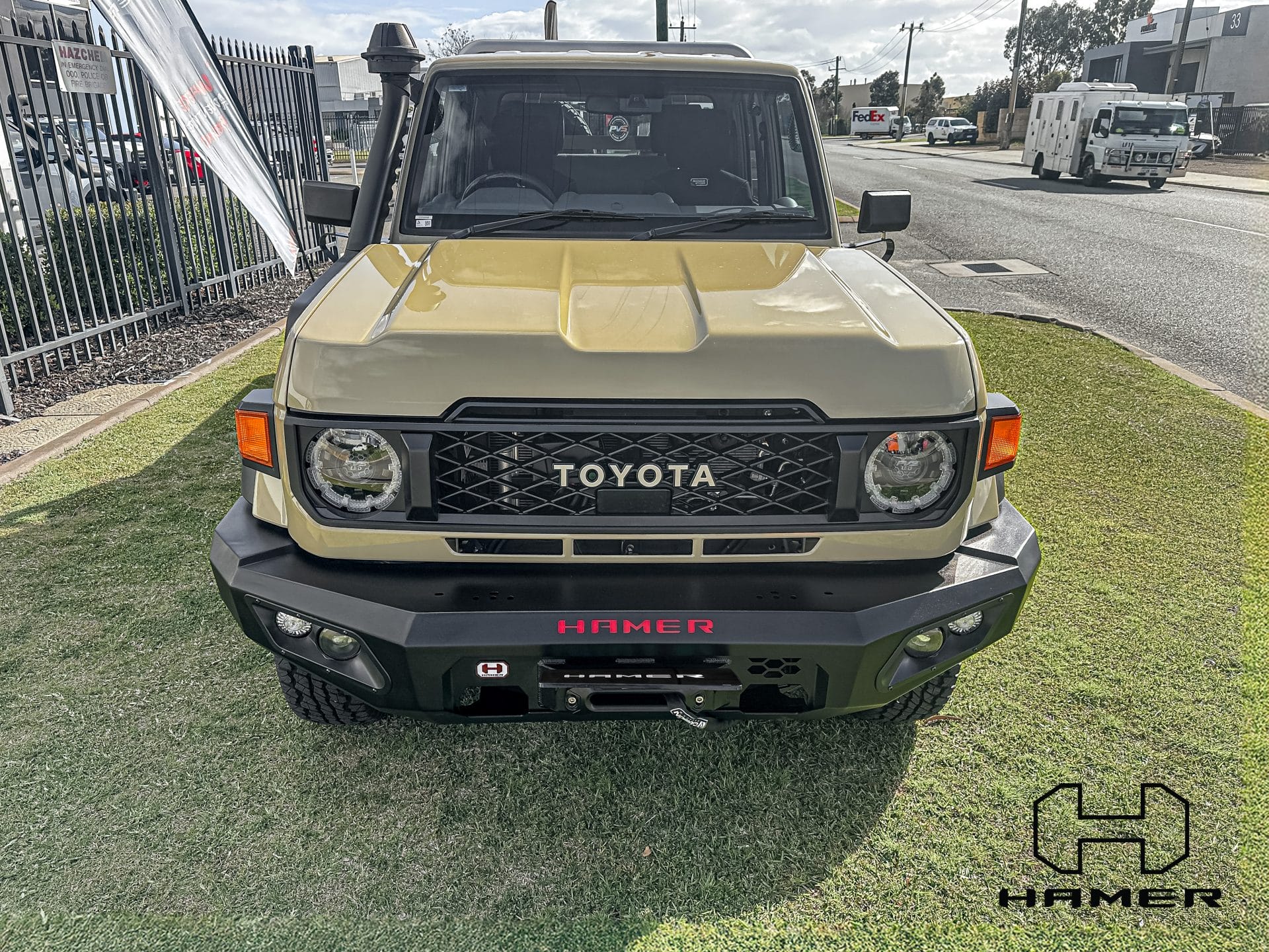 Hamer King series bull bar is a bumper replacement bull bar that has been specifically designed to fit Toyota 70 Series ( 2023 – Present ). Not only adding a tough look to your vehicle, Hamer bull bar protects the front of your vehicle during an unexpected event. Stay confident in every journey you make.