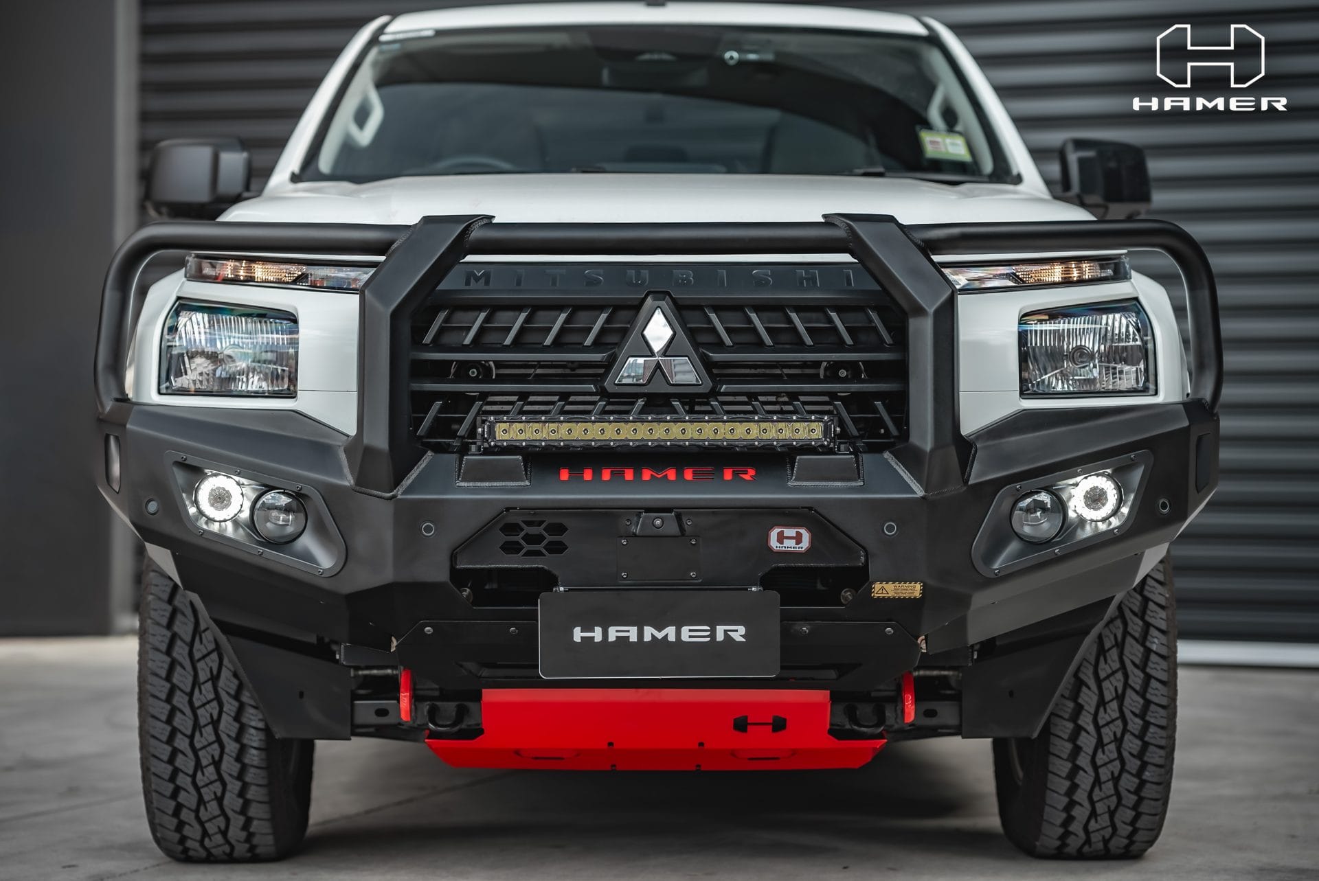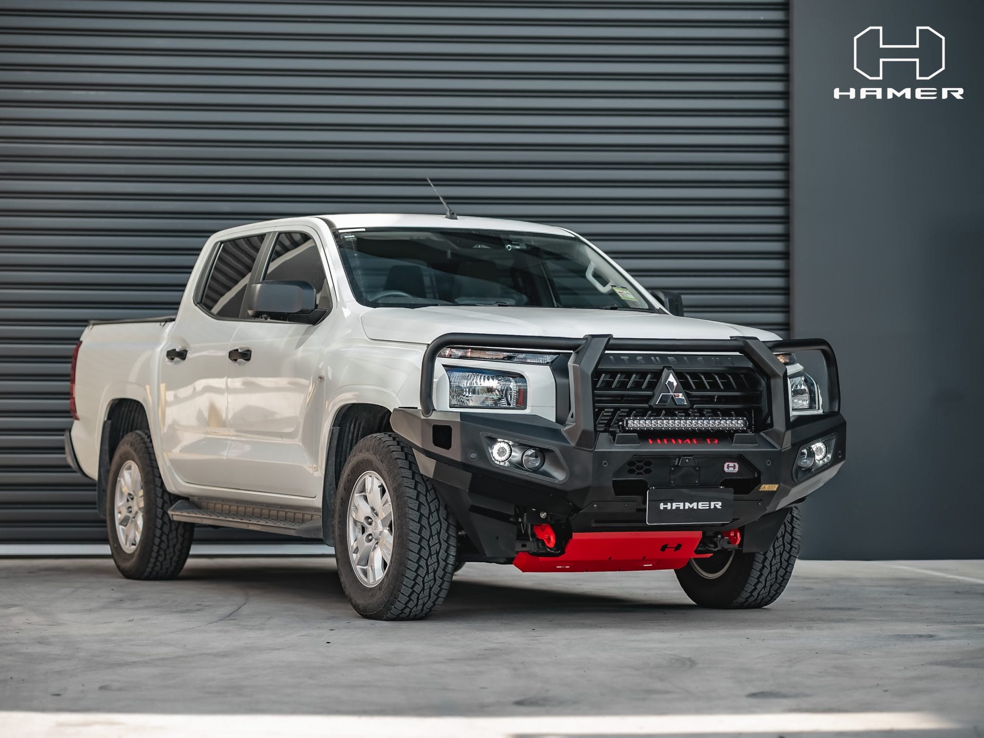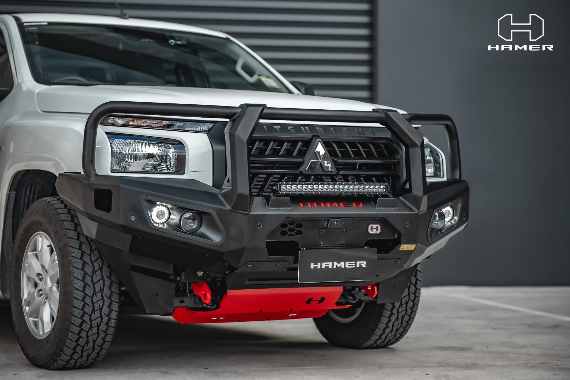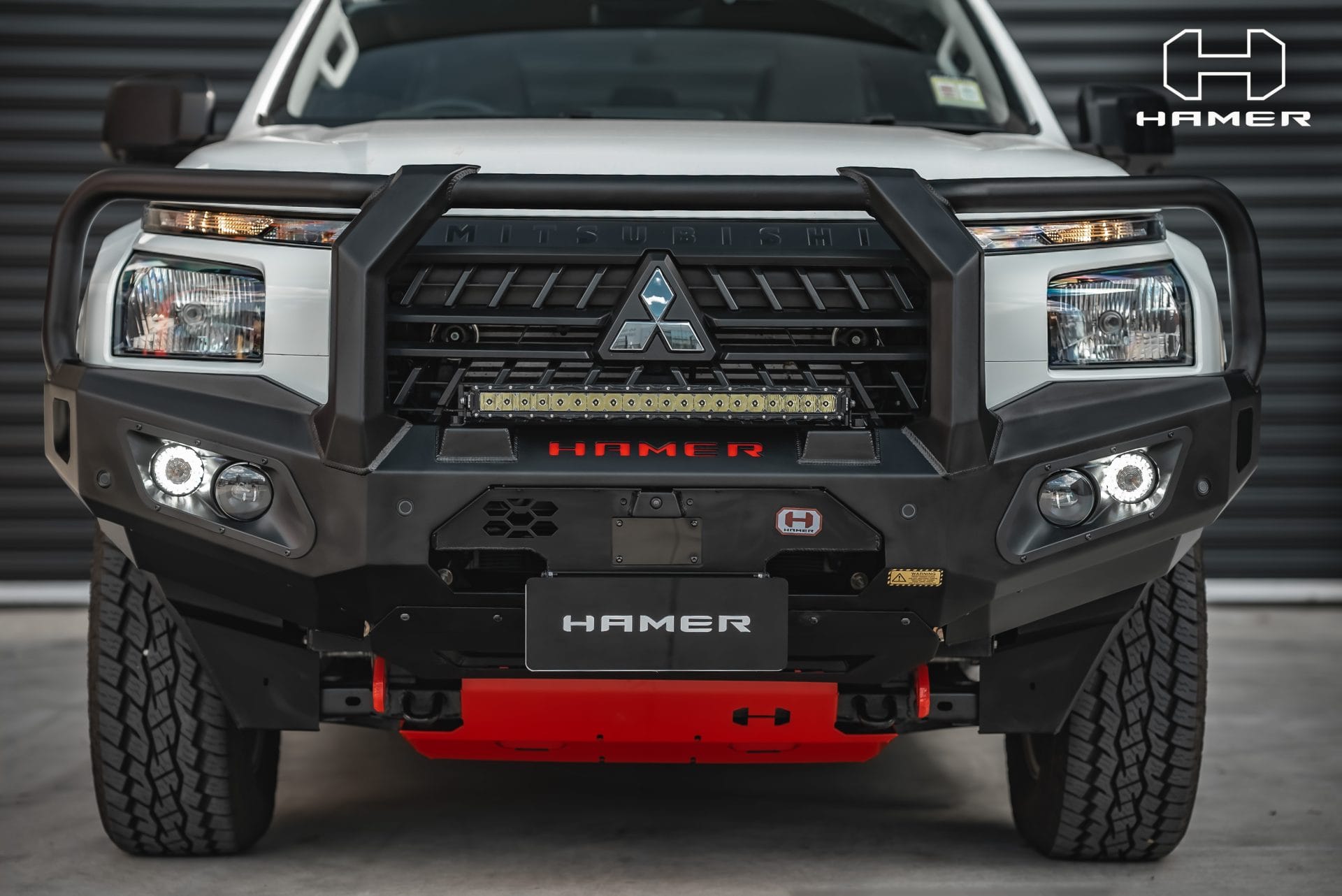 Constructed from 3mm high-grade steel plate, it meets ADR and Airbag compliance standards, offering the option for winch installation up to 12,000 lb (excluding Warn winches). With its E-Mark certified LED lighting system, encompassing daytime running lights, fog lamps, and indicators, your visibility remains uncompromised. The matte black powder-coated finish and included features like splash guards and additional light mounting points exemplify Hamer’s commitment to quality. Equip your Triton with the Hamer King Series Bull Bar, embodying style, safety, and off-road readiness in one dynamic package.