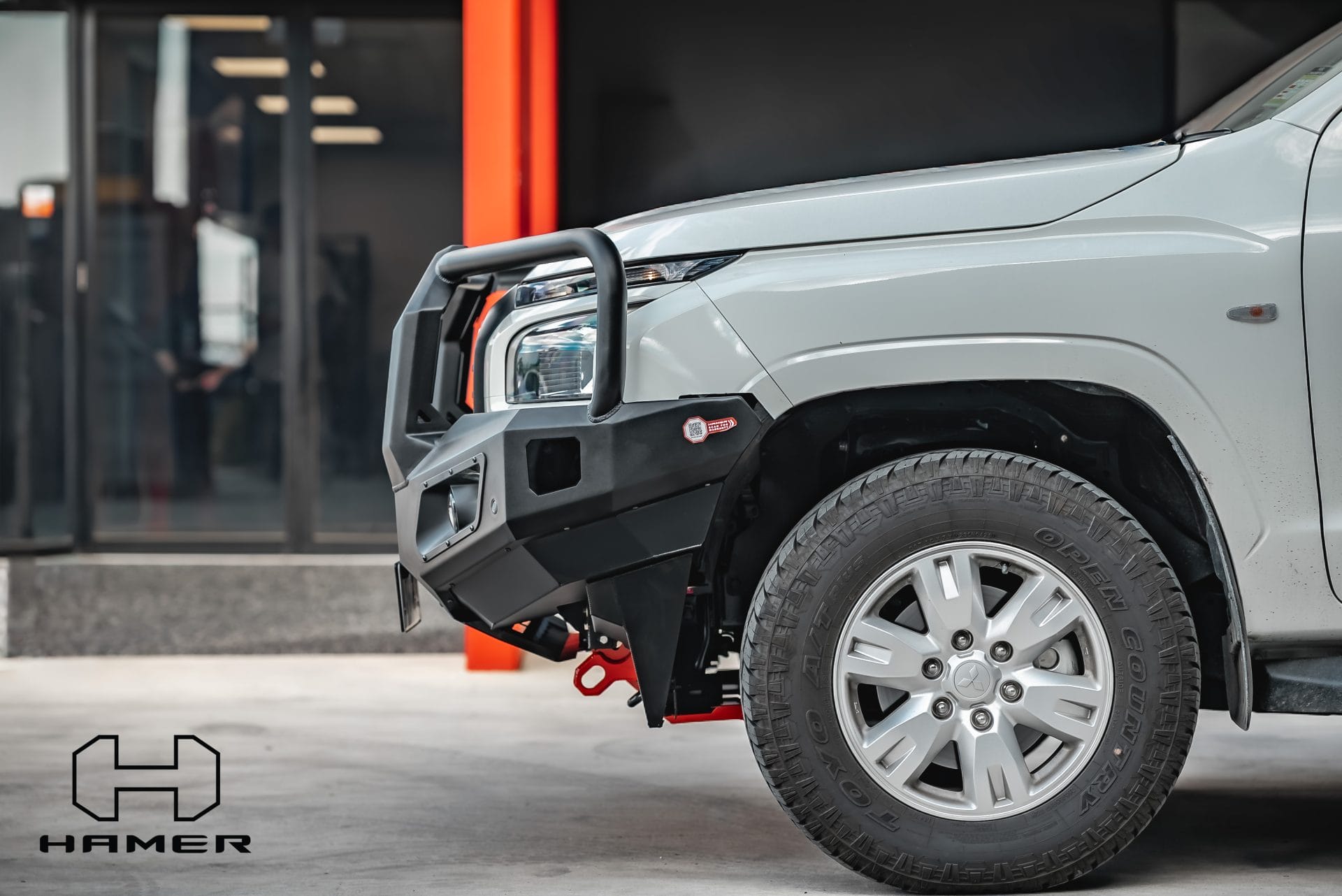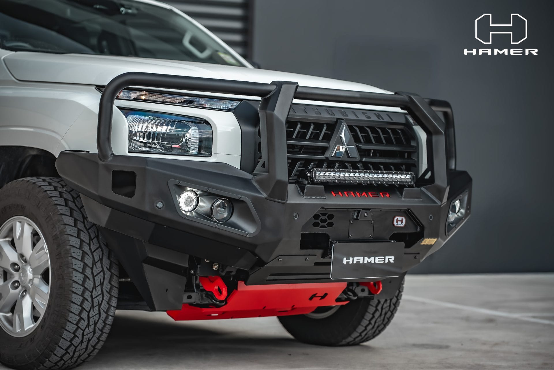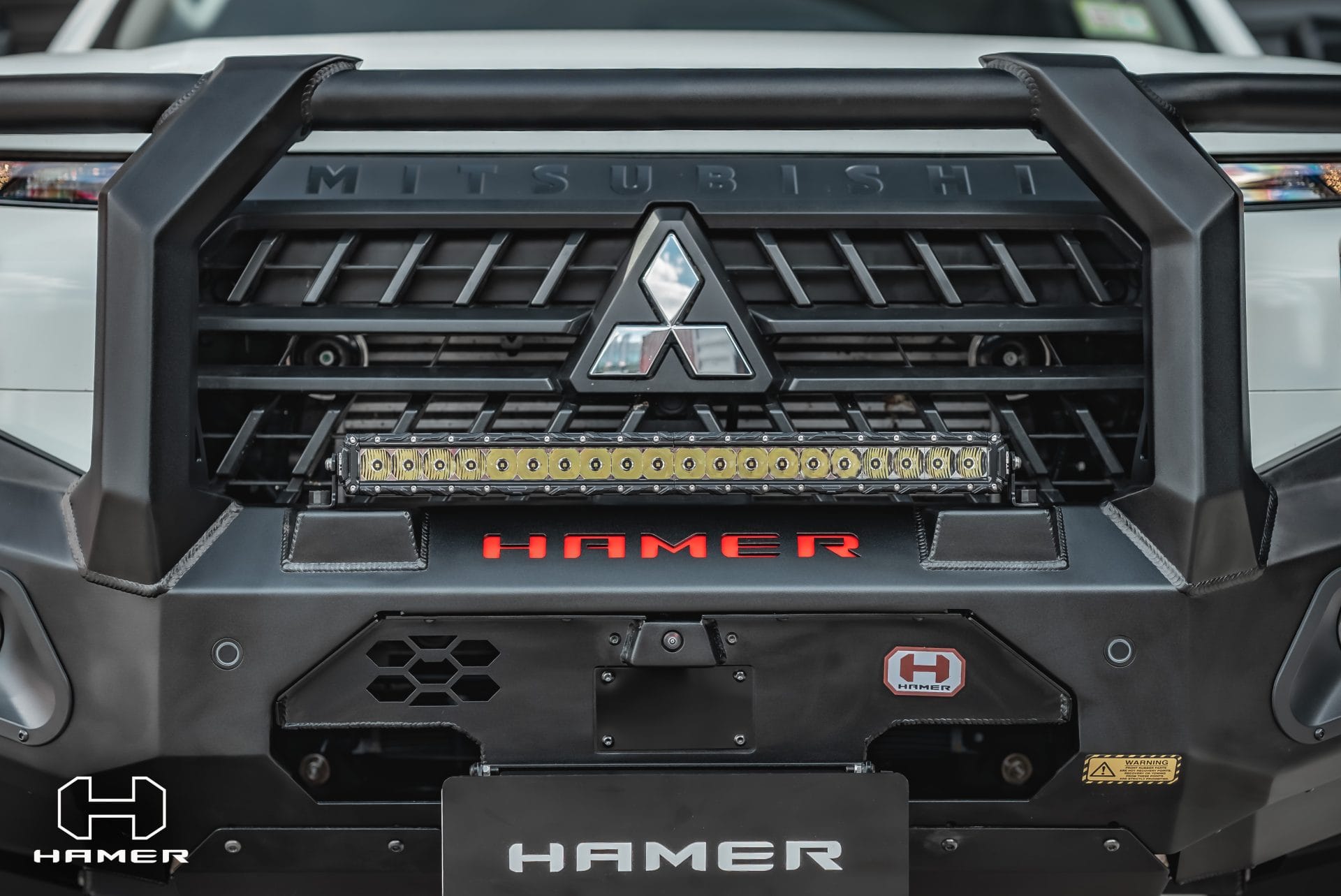 Introducing the Hamer King Series Plus Bull Bar for Mitsubishi Triton MV (2024 – Present). Crafted with precision, this bull bar is purpose-built to seamlessly fit your Triton, exuding both rugged aesthetics and robust protection. Elevate your vehicle’s appearance while safeguarding its front during unforeseen encounters. The bar’s compatibility with original factory parking sensors, Sonars and front camera relocation ensures a streamlined integration.
