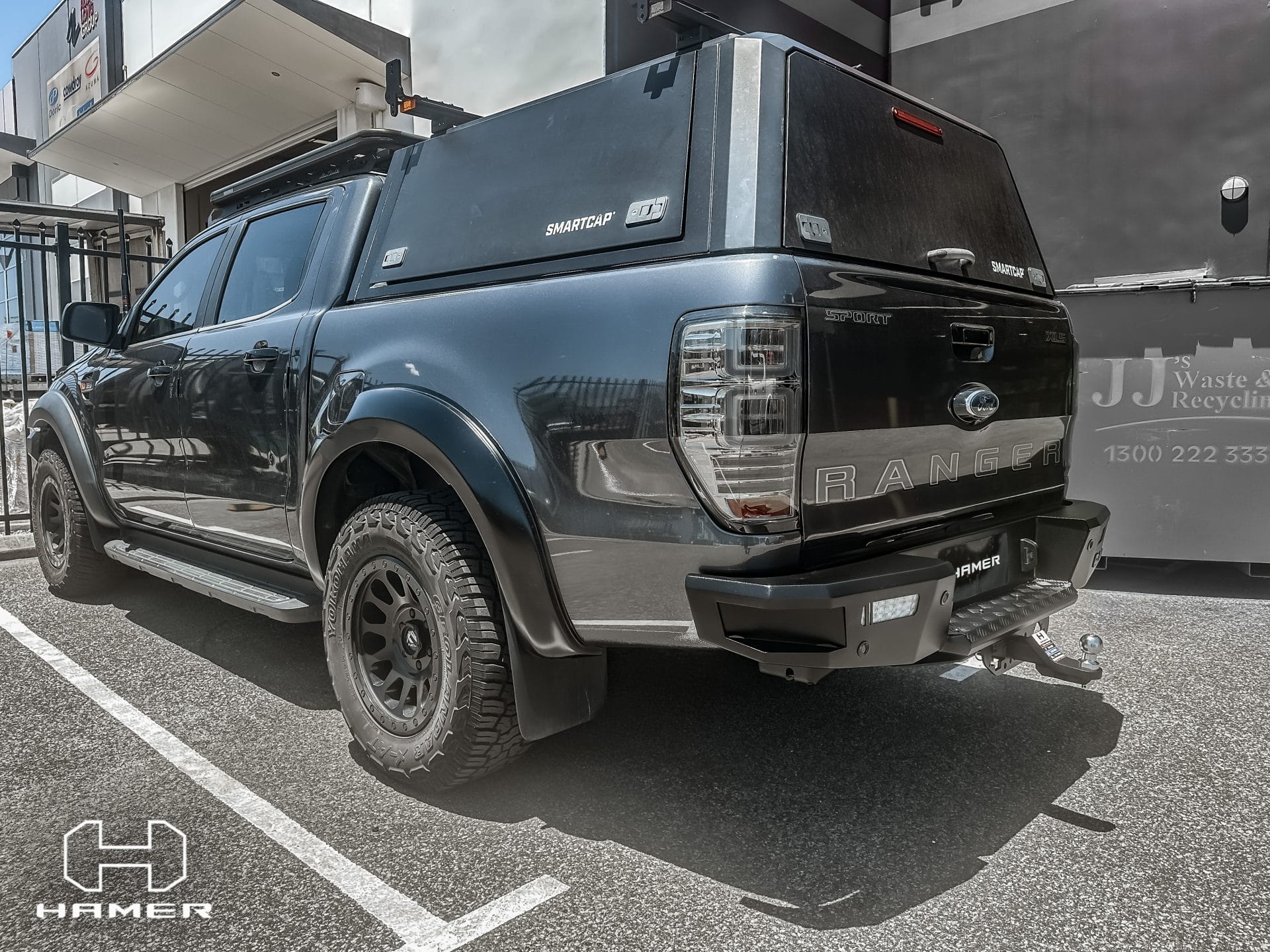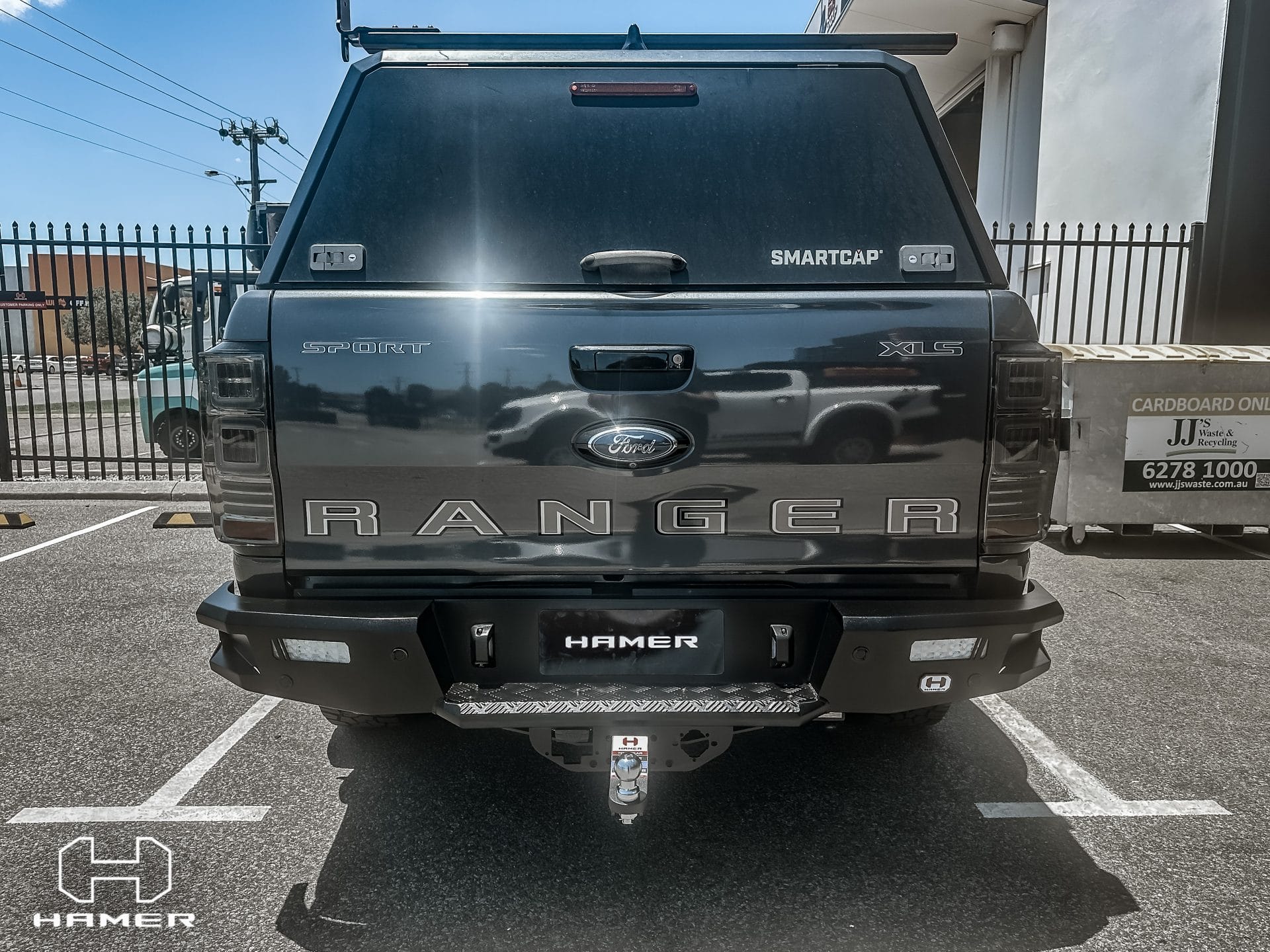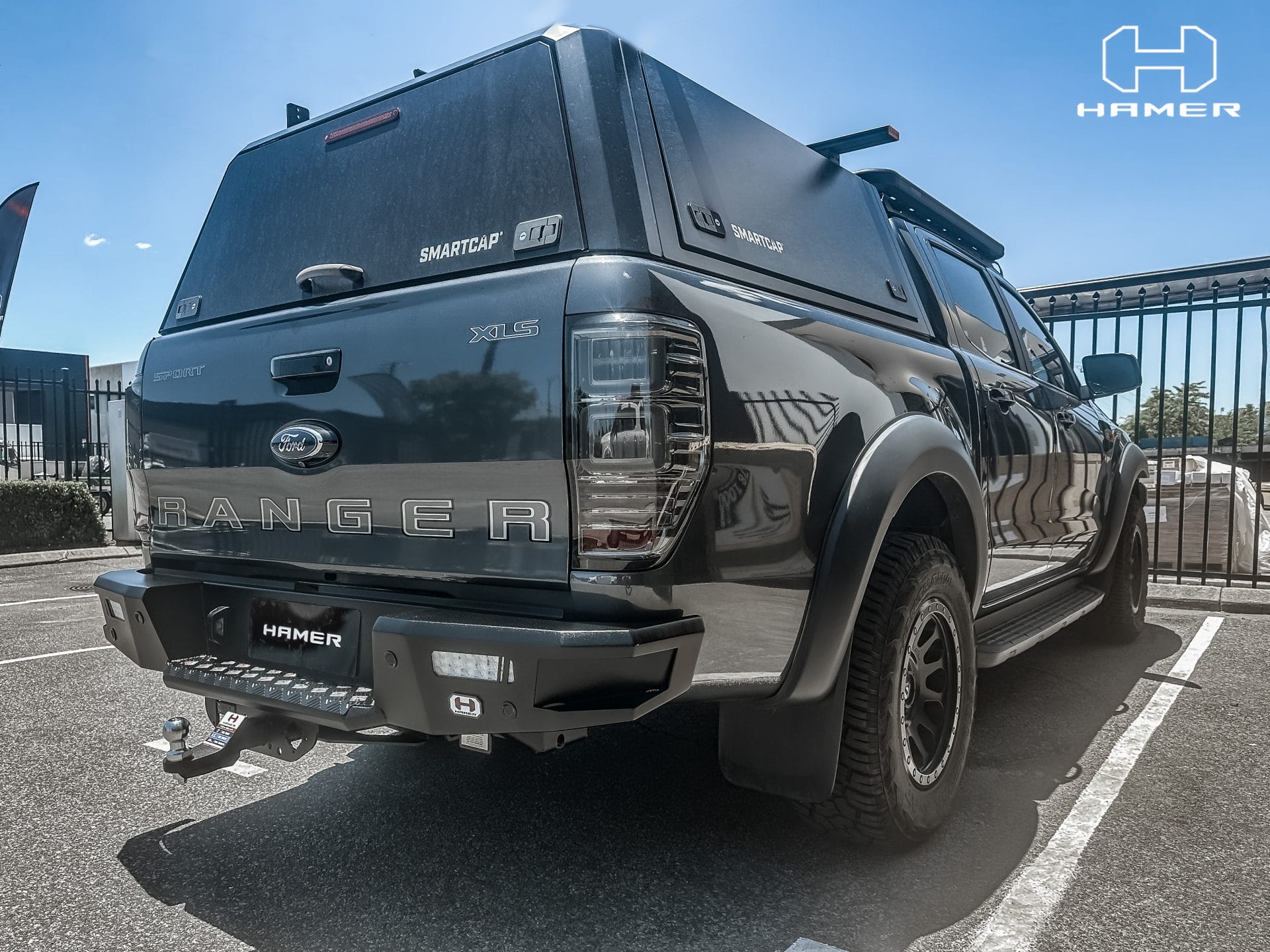 Discover the M-Series Rear Bar for Ford Ranger PX2, PX3 (2015 – 2022) by Hamer 4×4. Crafted from high-grade 3 mm steel plate, this rear bar comes with corner steps for easy rear access and a remarkable towing capacity of 3 tonnes. It also boasts LED turn signals, LED reverse lights, and a sleek matte black finish.